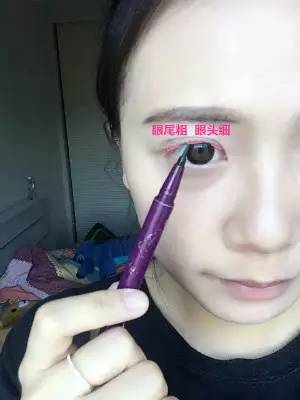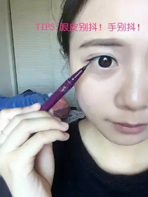 1.我建議剛學(xué)畫眼線的童鞋,使用液體眼線筆。畫眼線首先在眼頭、眼中、眼尾各畫上一筆,定好每個位置眼線的粗細。一般來說都是眼頭細,眼尾粗。