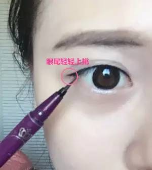 3.最后畫眼線的時候記住眼尾要輕輕向上挑