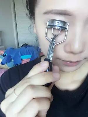 4.夾睫毛:將睫毛夾緊貼睫毛根部,夾一下停留一秒,挪出一點,再夾,再停留。也就是將睫毛分成根部、中部、尾部,分段夾,這樣睫毛才能真正夾翹。