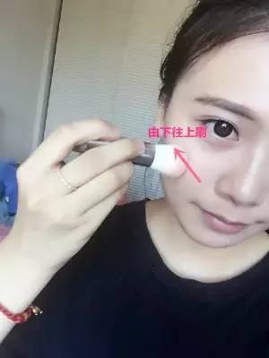 像這樣在臉部各個部位,隨意點上幾點,然后以鼻子為中心,發(fā)散涂抹均勻。鼻翼、眼下用手指按壓使底妝服帖。