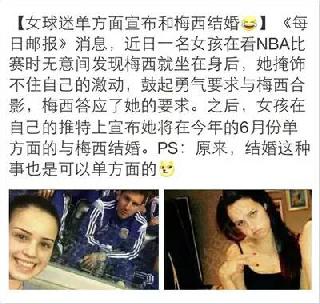 這句話源自一則新聞標(biāo)題,“女球迷單方面宣布和梅西結(jié)婚”。網(wǎng)友們發(fā)現(xiàn)原來結(jié)婚也是可以單方面宣布的,于是“我單方面宣布”迅速風(fēng)靡網(wǎng)路,并被各路粉絲引用出現(xiàn)了“我單方面宣布和xx結(jié)婚”。