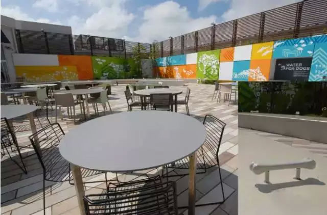 ↑木更津三井奧特萊斯購物城是一座海濱小鎮(zhèn),很多日本人會(huì)帶狗前來,這是專門開辟的狗與主人的共同休息區(qū)——栓狗樁也很有創(chuàng)意