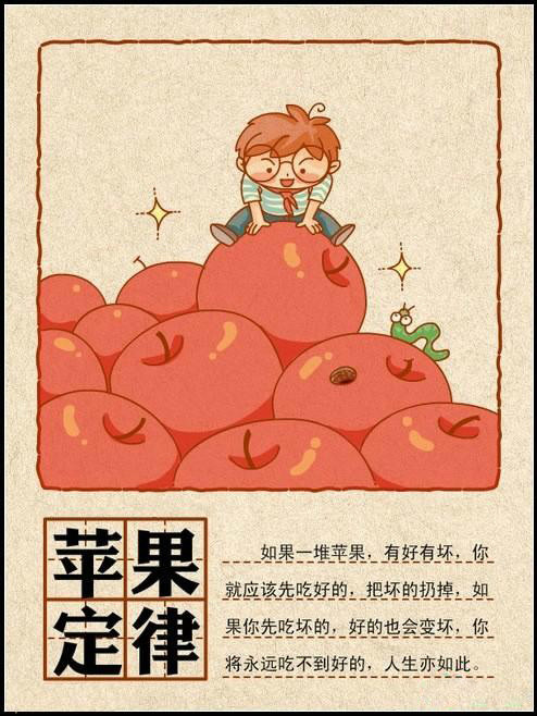 如果一堆蘋果,有好有壞,你就應(yīng)該先吃好的,把壞的扔掉,如果你先吃壞的,好的也會變壞,你將永遠吃不到好的,人生亦如此。信息源:揭陽招聘網(wǎng)_www.mingxunw.com